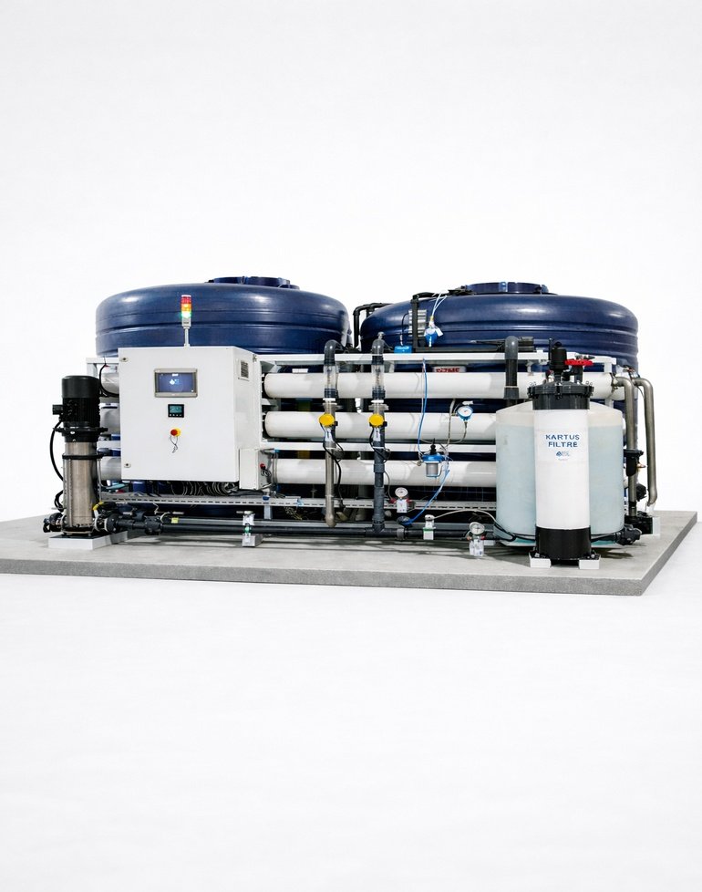 Gelişmiş ters ozmoz (Reverse Osmosis – RO) teknolojisi kullanılarak deniz suyundaki tuz, mineraller ve diğer çözünmüş maddeler etkili şekilde ayrıştırılır ve yüksek saflıkta su elde edilir.